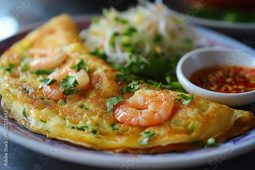 Golden Shrimp Crepe: Savory Delights with Fresh Herbs