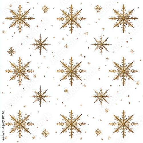 Golden Snowflake Pattern Overlay for Winter Xmas Holiday Design Template - Isolated on White Background with Falling Snowflakes and Texture Elements