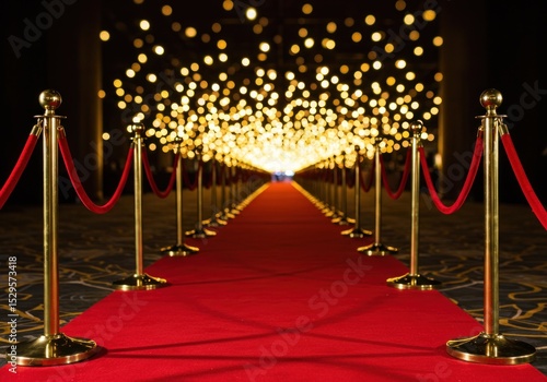 Golden Stanchions Line a Red Carpet Under Sparkling Lights