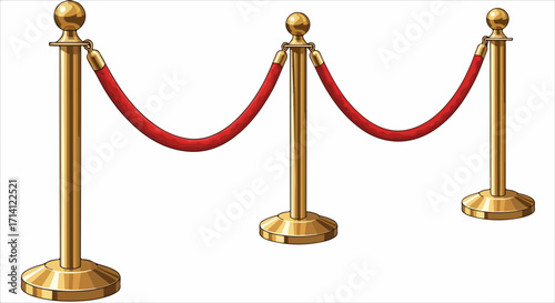Golden stanchions with red rope cordons create VIP entrance, adding flair and elegance. Golden stanchions are a clear marker of exclusivity, inviting selective access.