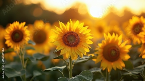 sunflower, gold, sunset, field, bright, vibrant, summer, nature, blooming, warm, plant, yellow, flower, agriculture, rural, daylight, organic, growth, beauty, landscape, scenic, warmth, horizon, sun, ray, radiant, sunshine, summer, crop, bloom, sunlit, harvest, abundance, vitality