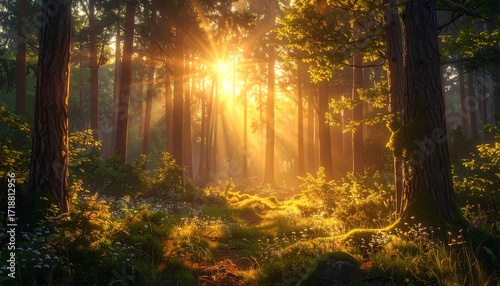 forest, sunlight, tree, nature, wood, gold, ray, morning, light, mystic, green, flora, vegetation, calm, peaceful, beauty, sunrise, daylight, environment, sunbeam, tranquil, lush, morning light