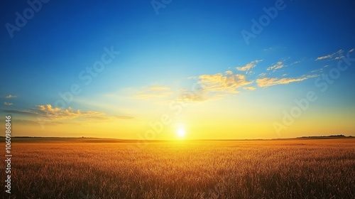 sunset, gold, wheat, field, sky, grass, horizon, nature, landscape, cloud, sun, rural, yellow, blue, orange, green, summer, farmland, agriculture, peaceful, serene, tranquil, beautiful, scenic, natural, golden hour, evening, daybreak, dusk, dawn, light, ray, bright, warm, atmospheric, photo, scenery, outdoors, countryside