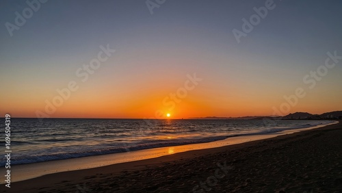 horizon, sunset, orange sky, coastal, shore, coast, sea, seacoast, sunny, beach