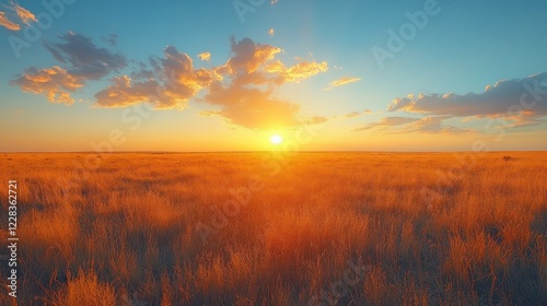 sunset, field, gold, sky, cloud, horizon, nature, landscape, sunrise, dusk, grass, prairie, sun, light, orange, yellow, blue, bright, scenic, peaceful, serene, quiet, huge, open, tranquil, background, view, outdoors, environment, rural, meadow, beauty, natural, idylli, calm, day, sunlight, summer, warm