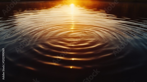 water, ripple, sunset, gold, sun, light, orange, dark, calm, peaceful, serene, tranquil, evening, dusk, nature, scene, background, texture, abstract, beauty, glow, shine, ray, colours, hue, shades, tone, ambience, mood, atmosphere, stillness, quiet, liquid, surface, wave, pattern, circular, concentric, radial