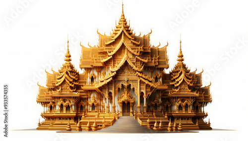 Golden Temple of Thailand: A majestic, intricate, and ornate golden temple stands tall, radiating a sense of spiritual significance and cultural heritage, isolated on white background