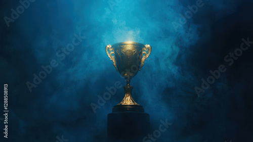trophy, gold, mist, victory, achievement, award, celebration, success, competition, symbol, shining, elegant, background, dark, light, glow, design, ornate, recognition, honour, prize, sport, event, luxury, winner, champion, prestigious, decorative, isolated, dramatic, sharpened, beautiful, artistic, fantasy, mystical, atmosphere, inspiration, excellence
