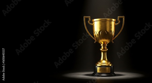Golden Trophy Symbolizing Success and Achievement Illuminated Against Dark Backdrop for Awards and Recognition