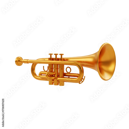 Golden trumpet musical instrument brass metal polished shine object isolated studio shot elegant classic jazz band orchestral sound equipment Tansparent Background