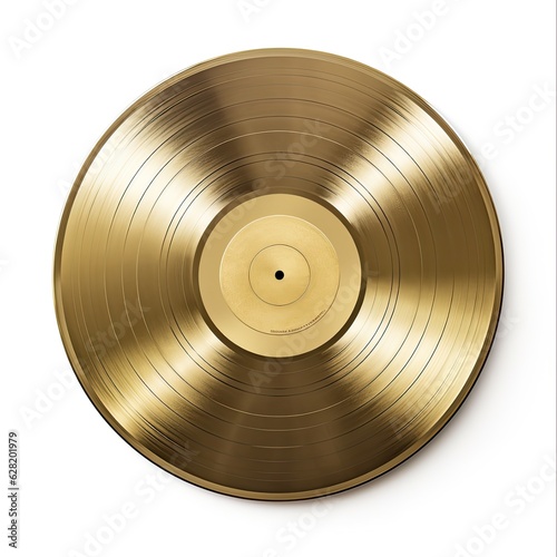 Golden Vinyl Record: Realistic LP with Disco Melody Isolated on White Popular Background: Generative AI