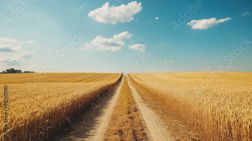 field, wheat, path, gold, agriculture, country, rural, farm, gold, crop, farmland, sky, cloud, landscape, nature, summer, horizon, grass, green, blue, yellow, dirt, ground, sun, day, bright, brightly, beautiful, scenery, natural, farmhouse, harvest, grain, meadow, trail, countryside, pathway, walk, road, journey, travel, growth, wide, open, huge, aerial, perspective, distance