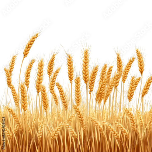 Golden wheat field swaying gently in the breeze against a bright transparent background, golden wheat field isolated on transparent background