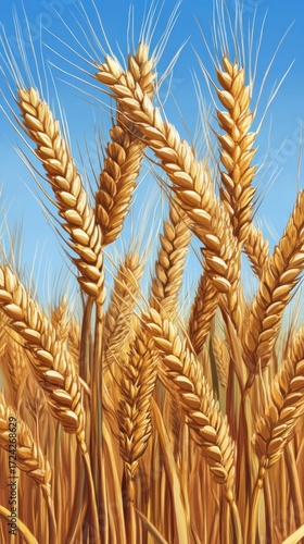 Golden Wheat Field Under a Bright Summer Sky: A Vibrant Harvest Scene