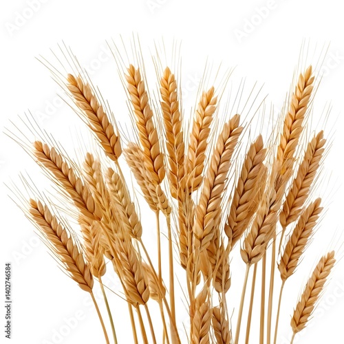 wheat, grain, harvest, agriculture, farming, cereal, barley, rye, ripe wheat, autumn, fall, summer, food, bread, bakery, farm, rural, nature, gold, yellow, closeup, isolated, white background, healthy, organic