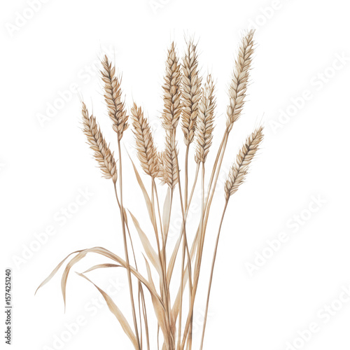 wheat, grain, stalk, gold, tan, beige, brown, dry, agriculture, harvest, field, plant, botanical, natural, organic, food, cereal, crop, summer, autumn, rustic, texture, detail, closeup, isolated