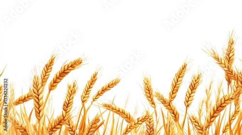 Golden wheat stalks swaying gently in the breeze against a bright white background, symbolizing harvest and abundance