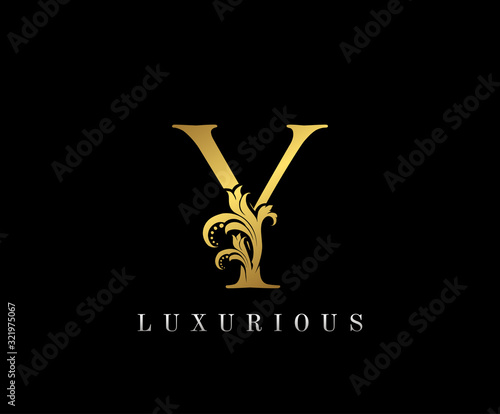 Golden Y Luxury Logo Icon, Vintage Royal Gold Y Letter Logo Design.