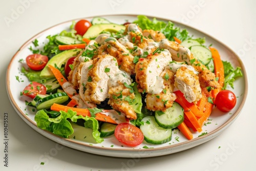 Golden-Brown Chicken Tenders Salad with Creamy Ranch Dressing