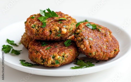 chickpea, patty, food, cookery, middle, eastern, vegetarian, vegan, healthy, delicious, meal, eatery, receipe, cooking, eat, dinner, lunch, brunch, tasty, fresh, parsley, herb, plate, white, background, closeup, photo, culinary, eating, patty, crispy, gold, brown, easy, simple, home, styling, tip