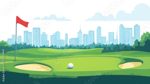 golf, putting, green, city, course, illustration, background, landscape, sport, game, hole, ball, flag, sand, trap, city landscape, skyline, urban, nature, recreation, leisure, activity, competition, tournament, fairway, golf ball, golf course, summer, fun, relaxation, hobby, lifestyle, travel, vacation, championship, professional, amateur, practice, swing, club, caddie, tee, grass