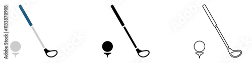 golf sport with ball tee and club stick vector pictogram sign icon symbol ui and ux design, glyphs and stroke line
