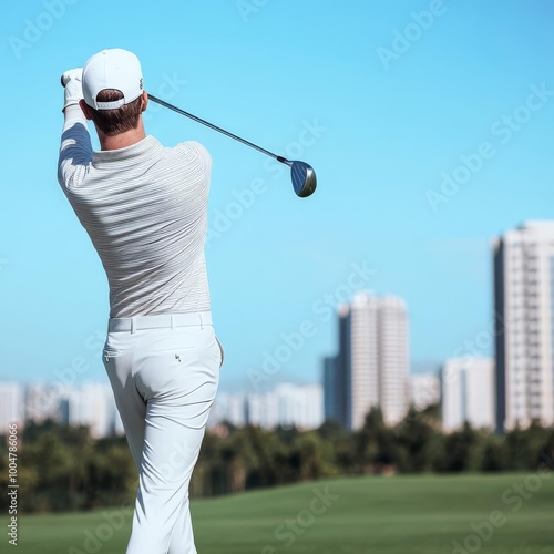 precision, golf, course, golfer, perform, swing, modern, city landscape, represent, urban, jungle, sport, sharpened, fairway, skill, motion, art, technique, posture, rythm, balance, strength, landscape, athlete, health