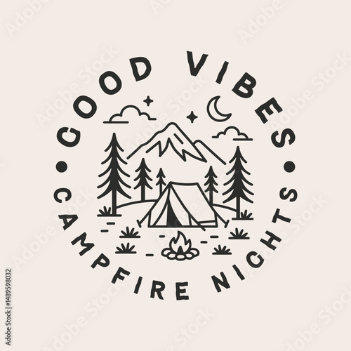 Good vibes, campfire nights. Forest nature camping t shirt design