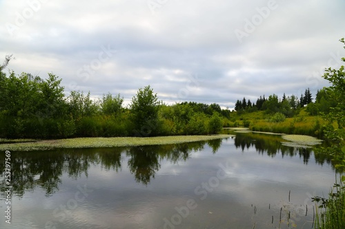 lake, water, landscape, sky, nature, river, blue, forest, cloud, tree, summer, duck pond, tree, green, cloud, spring, beauty, calm, outdoors, grass, scenery, autumn