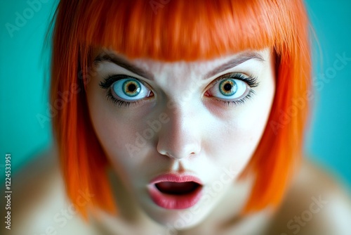 Gorgeous very stunned mixed-race girl - for ads, way poster and digital marketing use. Commercial ad concept visual concept art design. Short coiffure - red hair. Vibrant style portraits.