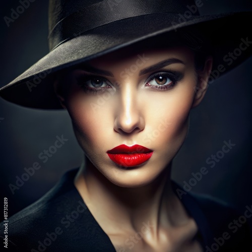 mysterious, woman, black, hat, red, colours, scheme, closeup, plan, portrait, dark, background, shadow, mystery, riddle, look, make-up, elegance, fashion, style, glamour, beauty, femininity, drama, night, piquancy, darkness, silhouette, contrast, intrigue, passion, attractiveness, mysticism, sensuality, gothic, mood, romance, charisma