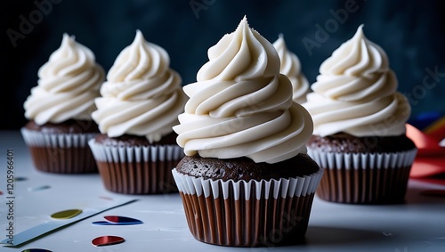 Gourmet Cupcakes with Swirls of Cream ,Bakery Specialties and Party Sweets, Beautifully Decorated Cupcakes with Cream Frosting ,Tempting Pastry Delight