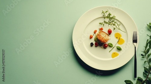 food, dish, plate, epicure, ingredient, minimalism, fork, table, culinary, healthy, presentation, artistic, colours, vegetarian, fresh, creative, cooking, receipe, dining, cookery, isolation, copy, space, copy space, copy space, background, overhead, serving, meal, garnish, greener, aesthetic, contemporary, style, eatery, design, topview, delicious, visually, appealing, upscale, modern, elegant