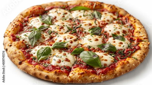 gourmet pizza, italian pizza with thin crust, rich tomato sauce, gooey mozzarella, and fresh basil leaves a delicious traditional dish
