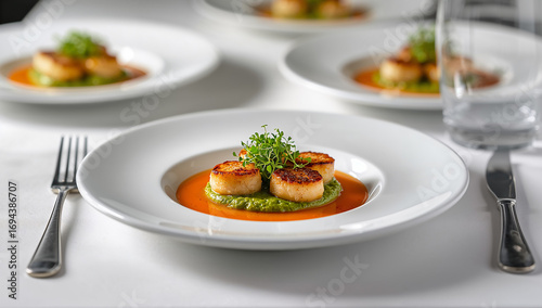 epicure, scallop, art, culinary, favor, artistry, food, cookery, presentation, eatery, dish, savour, life events, dining, fine, luxury, meal, chef, delicious, elegant, aesthetic, herb, modern, culinary arts, gastronomy, ingredient, fresh, plate, colours, beauty, creativity, style, plating, finesse, quality, indulgence, upscale, seafood, table, crockery