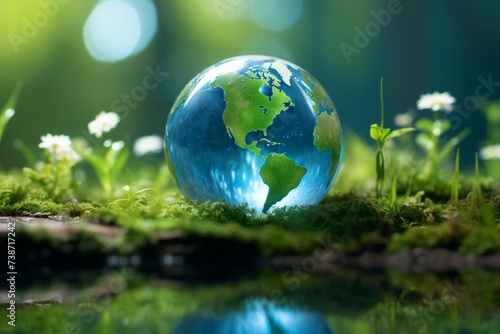 Government collaboration with green globe for renewable and sustainable resources on earth day