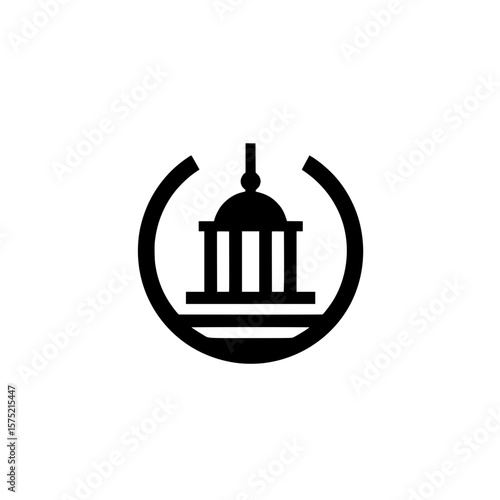 Government dome building icon encircled for authority, capital city, or institutional representation