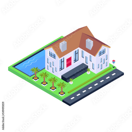 accommodation, home, house, building, architecture, structure, estate, property, residence, icon, vector, isometric