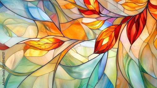 Graceful botanical tendrils, luminous watercolor shading, radiant stained glass highlights, delicate airy swirls.