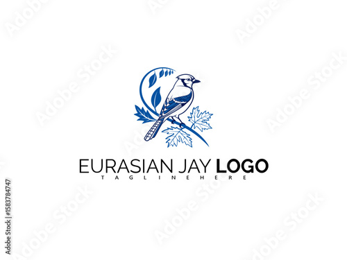 Graceful Eurasian Jay Logo Design in Blue Vector Line Art. Perfect for Wildlife Bloggers, Nature Retreat Logos, Birdwatching Brands, and Forest Adventure Identity Materials.
