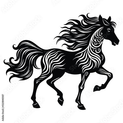 Graceful Running Horse Silhouette Vector Illustration, Black Equine Art on a White Background
