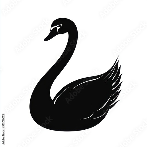 Graceful Swan Silhouette in Elegant Posture on White Background