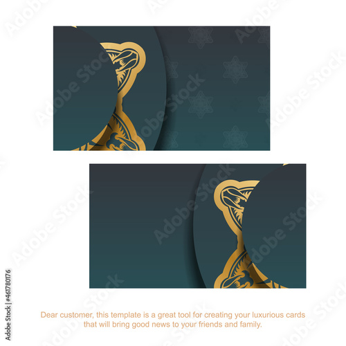 Gradient green business card with luxurious gold ornaments for your contacts.