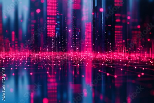 Gradient grid lines linking smart city dots, illustrating technology and metaverse concepts