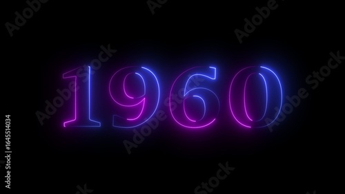Gradient neon numbers 1960 transitioning from blue to purple on black year glowing