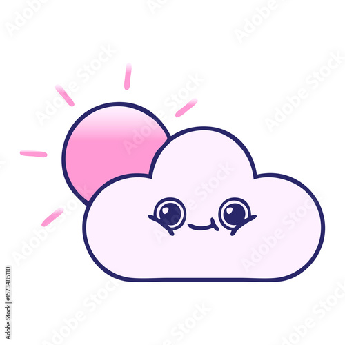 neon, cartoon, sun, cloud, weather, sunshine, cloudy, cute, illustration, retro, freehand, free, hand, drawing, clip art, clip, art, artwork, quirky, gradient, shaded, slick, object