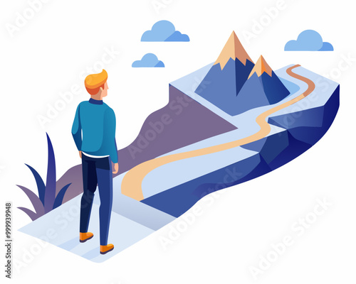 man, person, preparing, conquer, concept, image, isometric, three-dimensional, success, business, illustration, adult, vector, aspiration, growth, leadership, planning, new, height, exploration, wealth, color image, rock climbing, climbing, adventure, backpack, blue, ice axe, abstract, way, symbol, achievement, development, improvement, innovation, working, motion, picking up, assistance, authority, award, tied-up