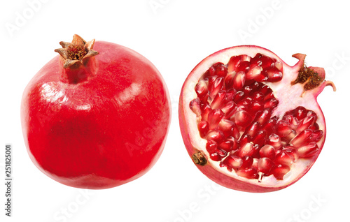 pomegranate, pomegranate, fruit, kernel, half, half, isolated, red, fruit, fruit, round, vegetarian, exotic, tropical, vegetarian, whole, release