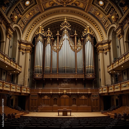 organ, instrument, playing, hall, concert, indoor, empty, sitting, seat, design, intricate, architecture, building, classic, balcony, stage, performance, wood, structure, ornate, audience, event, interior, view, musical, culture, nobody, arch, gold, detail, pattern, decoration, ceiling, symmetry, scene, perspective, artwork, luxury, style, vintage