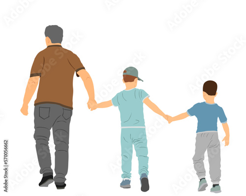 Grandfather and grandsons hold hands and walking. Grandfather Carrying Grandson vector illustration. Fathers day. family love, outdoor activity. Boys with grandpa. Family values. Adopted child enjoy.